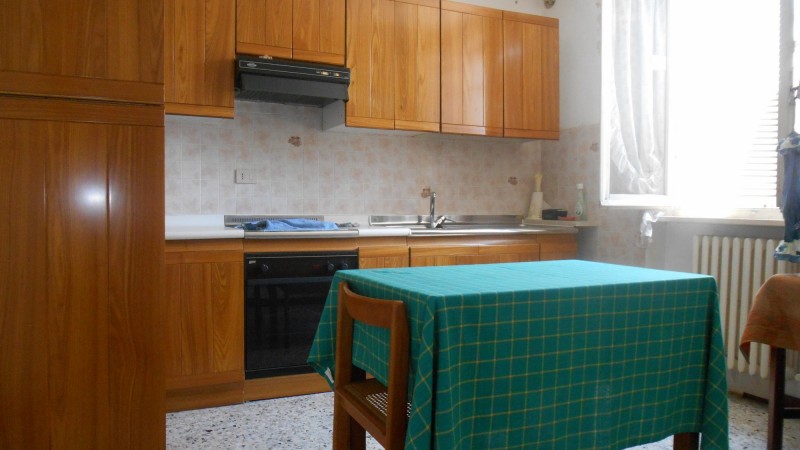 JESI: Vendiamo soluzione cielo-terra di 90mq abitativi, posta su 2 livelli, con garage di 24mq e terrazzina di 8mq ed altro terrazzino di 2mq. Parzialmente rivisto.Distribuzione Interna: