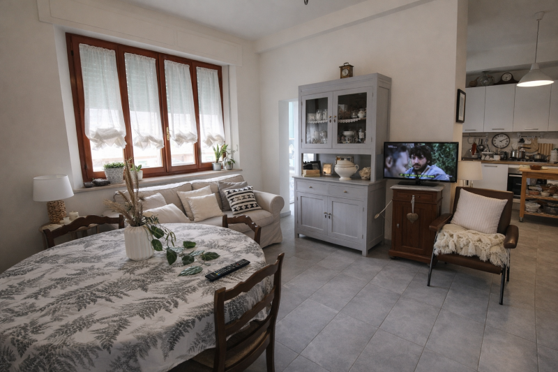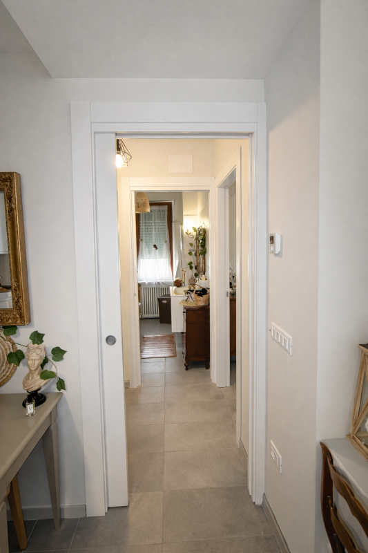JESI: Vendiamo appartamento di 83 mq completamente ristrutturato e posto al piano primo con 3 balconi a livello, corte esclusiva dove si possono parcheggiare fino a 2 macchine e annesso accatastato dove c'è la possibilità di realizzare un garageDistribuzione Interna: