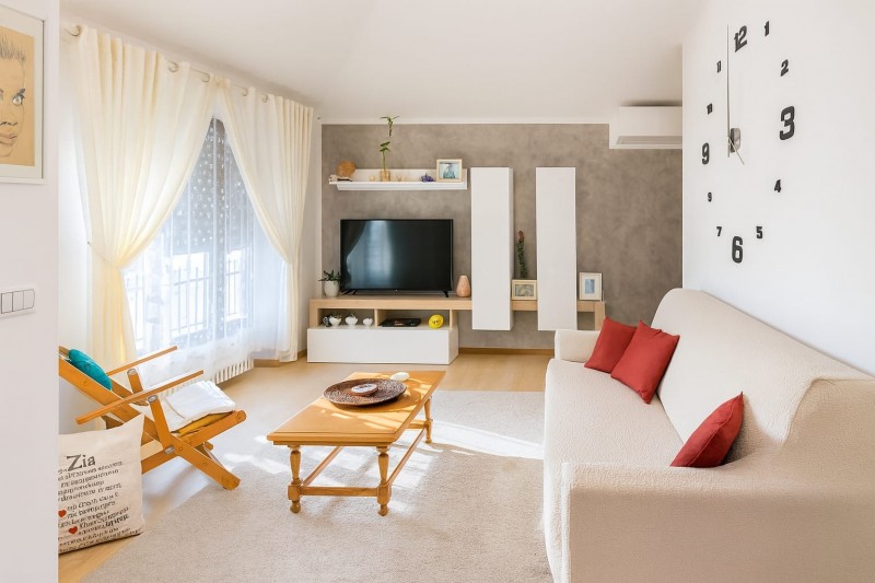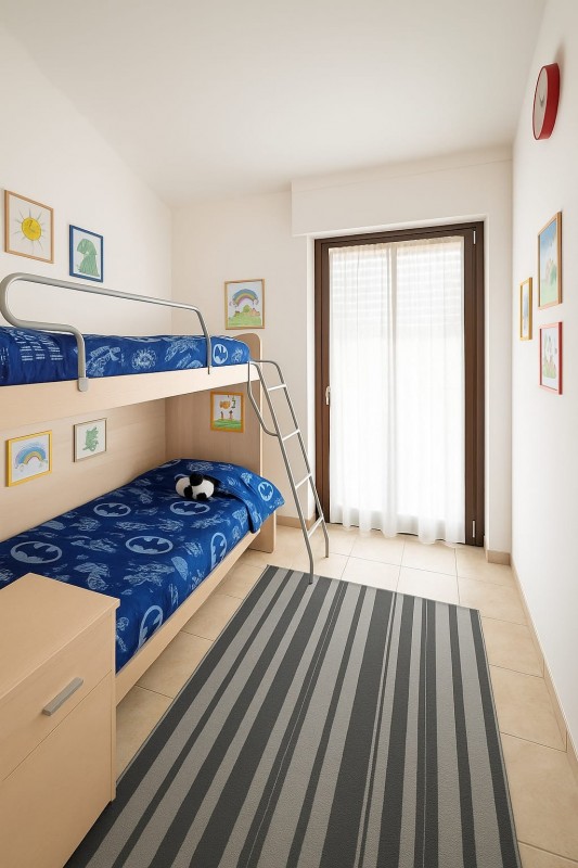 ingresso in zona giorno, qui abbiamo una parte adibita a salotto e una parte adibita a cucina, cameretta, camera da letto matrimoniale, bagno finestrato e balconi panoramici che girano tutti intorno l'appartamento