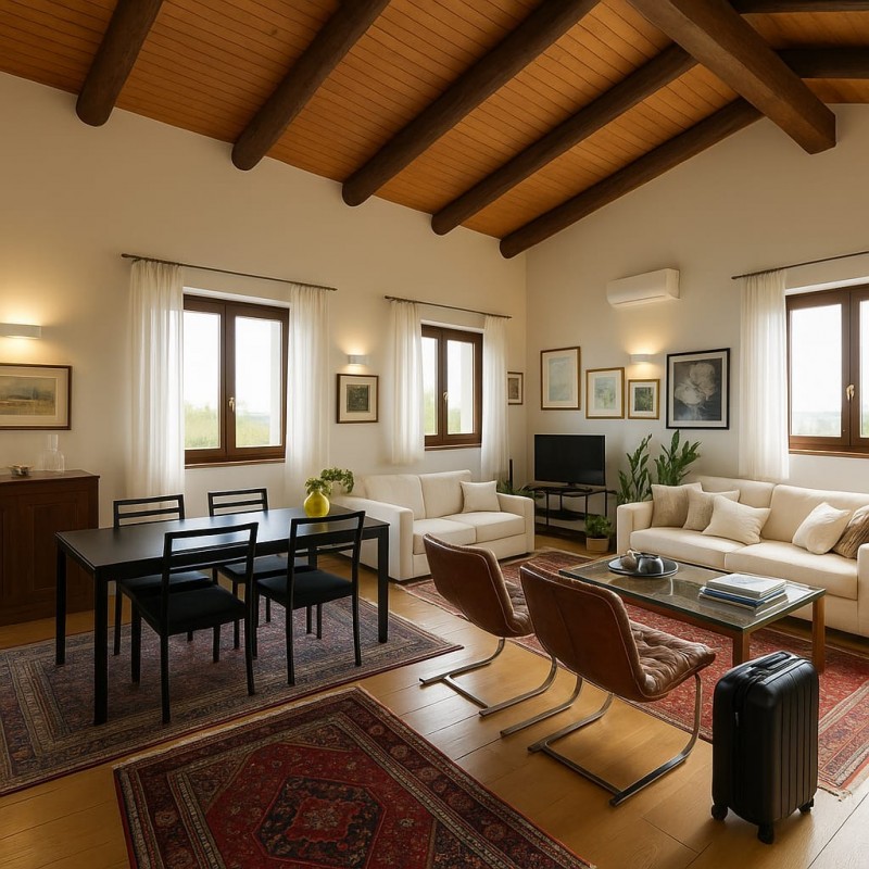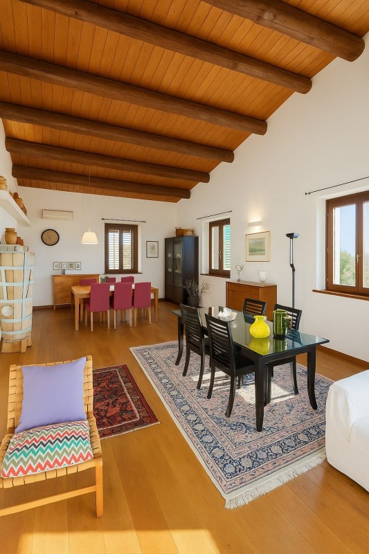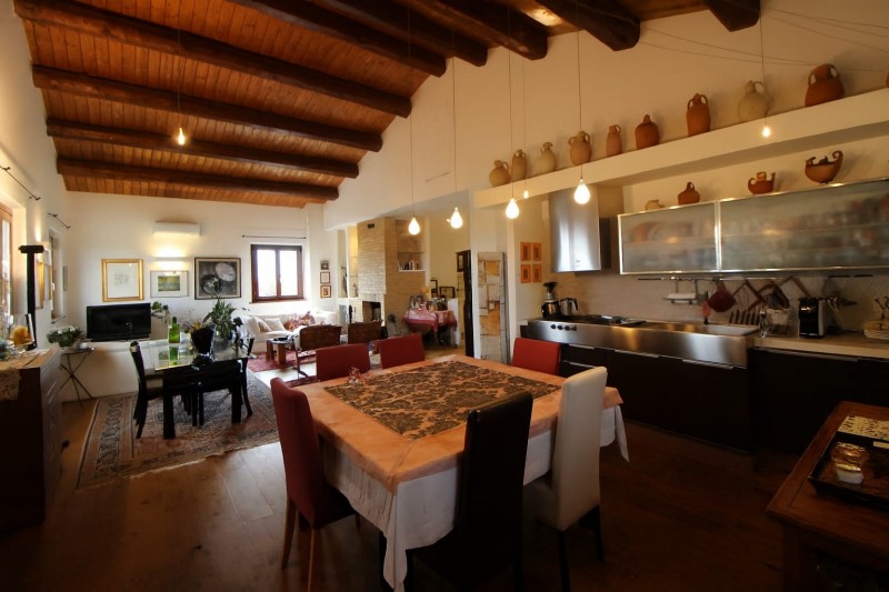 L'abitazione principale si sviluppa al piano primo ed è composta da una spaziosa e luminosa zona giorno di 50 mq suddivisa in cucina e salotto con camino, arricchita da due termoconvettori. La zona notte comprende due camere matrimoniali, una camera singola e doppi servizi finestrati: il primo con doccia e il secondo con vasca idromassaggio. Il tutto impreziosito da un raffinato parquet presente in tutta la casa. Gli infissi sono ad anta-ribalta, completi di zanzariere. La dependance, accogliente e funzionale, si compone di ampia zona giorno con angolo cottura, camera matrimoniale, ripostiglio e bagno con doccia e finestra
