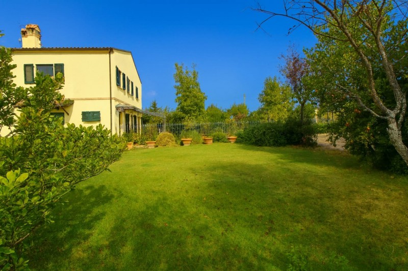 JESI: Splendida soluzione indipendente in campagna con dependance, giardino e piscina. Proponiamo in vendita un elegante proprietà indipendente immersa nel verde delle campagne jesine, composta da un'abitazione principale di 150 mq e da una dependance di 55 mq, arricchita da un ampio gazebo, un giardino esclusivo completamente recintato, irrigato e piantumato con ulivi e alberi da frutto, oltre a una bellissima piscina. La costruzione, realizzata nel 2006, si distingue per le finiture di pregio e per l'attenzione agli impianti: riscaldamento a pavimento con caldaia a condensazione, pannelli solari termici, fotovoltaico 3 kw, cisterna per il recupero delle acque piovane, termoconvettori a supporto nella zona giorno e riscaldamento a pavimento con caldaia a condensazioneDistribuzione Interna: