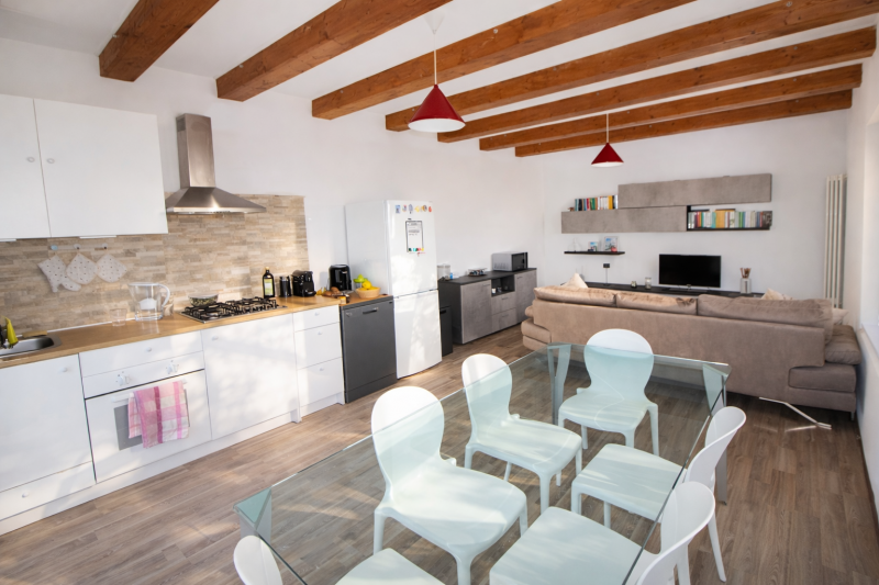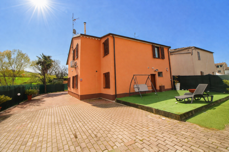 JESI: Vendiamo casa colonica abbinata ad un lato di 190 mq posta su livelli e divisa in 2 appartamenti: al piano terra abbiamo il primo appartamento di 80 mq, attualmente locato a 560 euro, al piano primo abbiamo il secondo appartamento di 115 mq, completano la proprietà un locale cantina dove è presente la caldaia e un accumulatore di 11 kw. Gazebo, corte esclusiva recintata e illuminata di 700 mq completamente piastrellata. Impianto fotovoltaico da 6 KWDistribuzione Interna: