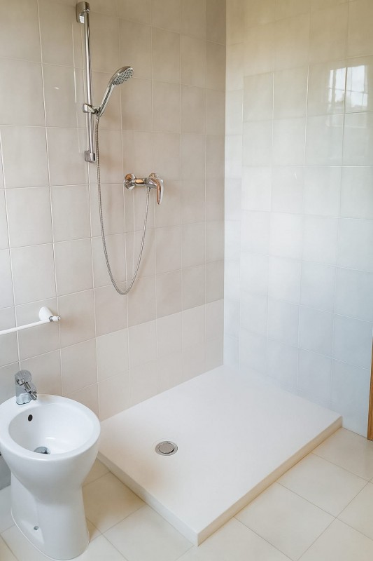 L' abitazione è composta da ingresso, ampio salone con camino, spaziosa cucina abitabile, due camere da letto e bagno finestrato con doccia e balconi a livello con l'appartamento