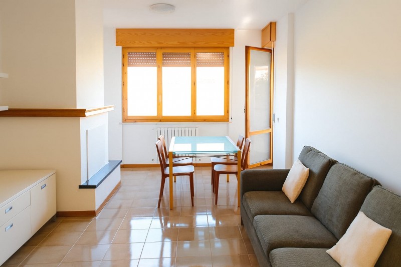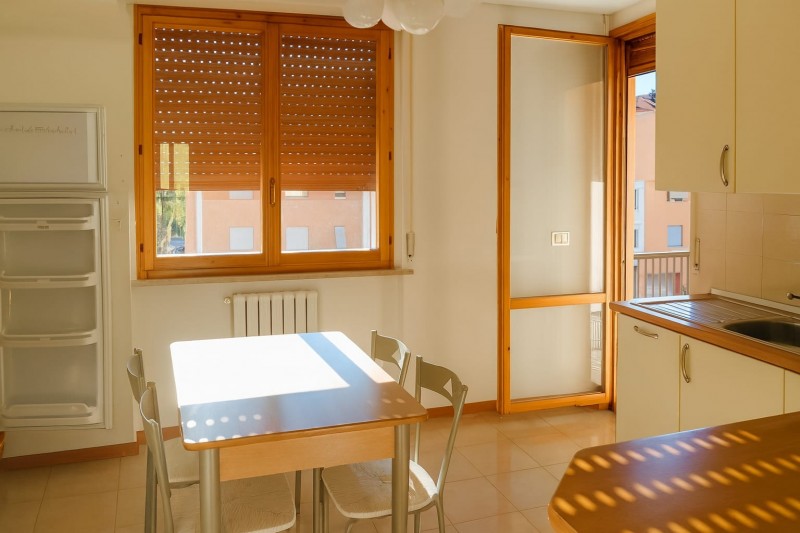 JESI: Affittiamo luminoso appartamento arredato di circa 80 mq posto al piano secondo, completamente ammobiliato con balconi, garage e cantinaDistribuzione Interna: