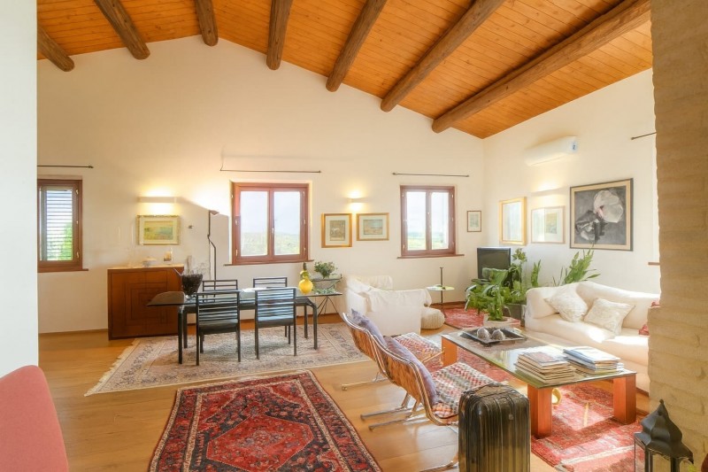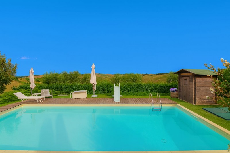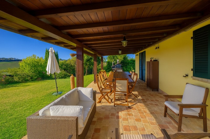 JESI: Splendida soluzione indipendente in campagna con dependance, giardino e piscina. Proponiamo in vendita un elegante proprietà indipendente immersa nel verde delle campagne jesine, composta da un'abitazione principale di 150 mq e da una dependance di 55 mq, arricchita da un ampio gazebo, un giardino esclusivo completamente recintato, irrigato e piantumato con ulivi e alberi da frutto, oltre a una bellissima piscina. La costruzione, realizzata nel 2006, si distingue per le finiture di pregio e per l'attenzione agli impianti: riscaldamento a pavimento con caldaia a condensazione, pannelli solari termici, fotovoltaico 3 kw, cisterna per il recupero delle acque piovane, termoconvettori a supporto nella zona giorno e riscaldamento a pavimento con caldaia a condensazioneDistribuzione Interna: