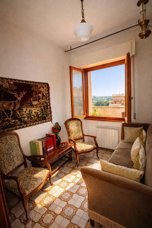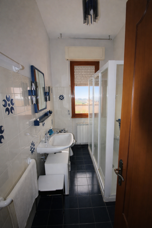 ingresso, soggiorno, cucina abitabile, camera da letto matrimoniale, camera singola, bagno con finestra e vasca e terrazzo di 180 mq