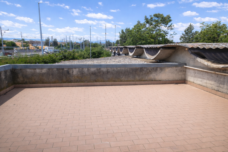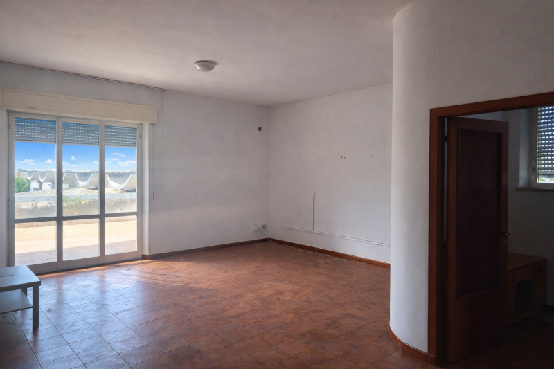 ingresso, soggiorno, cucina, 2 camere da letto matrimoniali, camera singola, bagno con doccia e finestra, terrazzo sul retro di 40 mq e balcone esclusivo